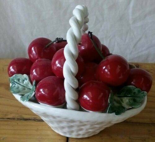 Italian Ceramic Woven Basket Of Cherries Decorative Accessories