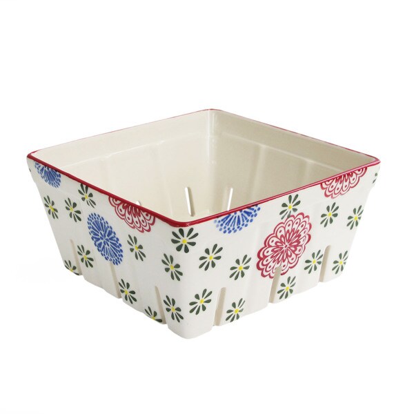 Shop Red And Blue Ceramic Square Kitchen Berry Basket Overstock