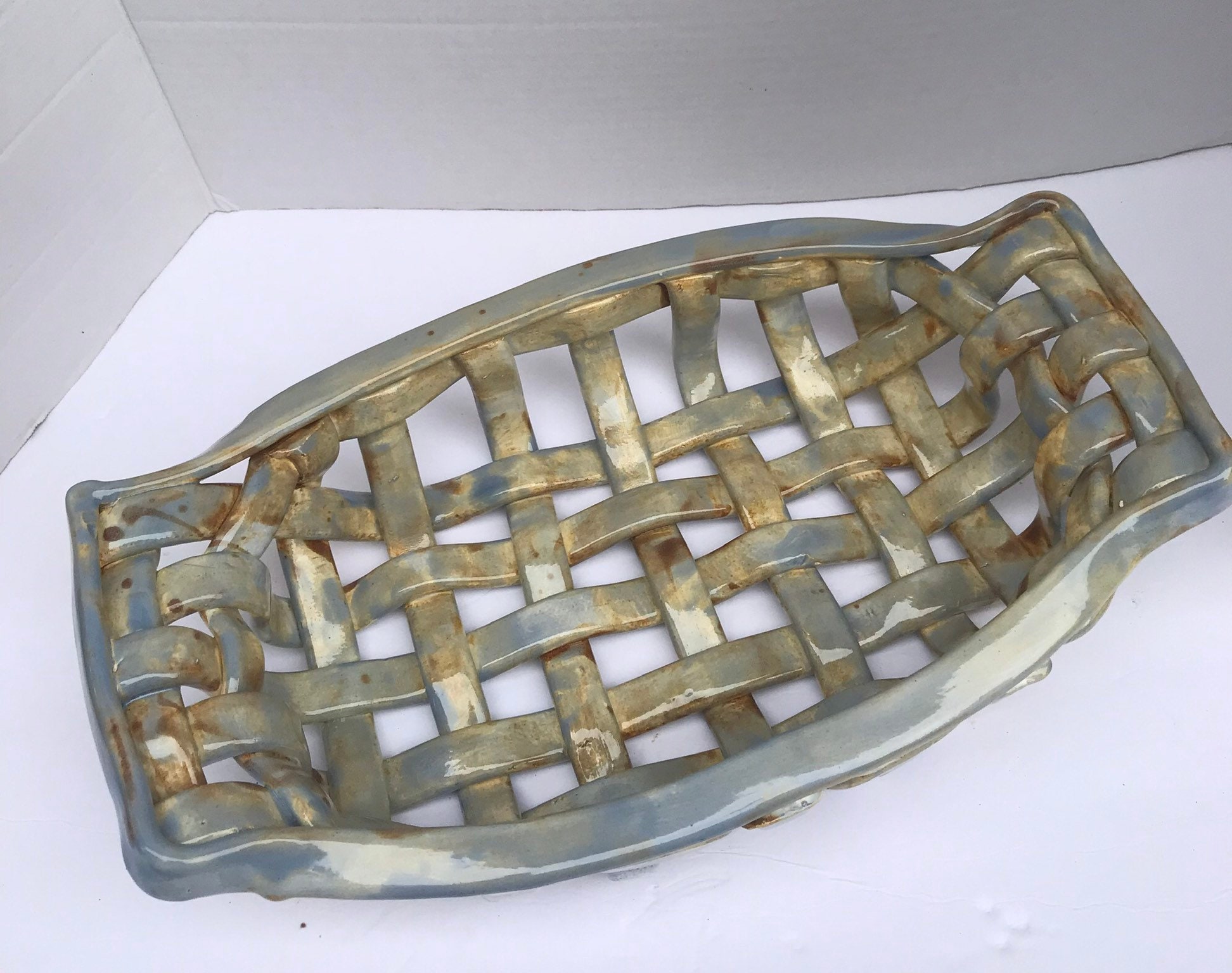 Ceramic Lattice Bread Basket Or Fruit Bowl Or Centerpiece For