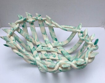 Kovot Ceramic Woven Serving Basket Great To Display Bread Or Fruit