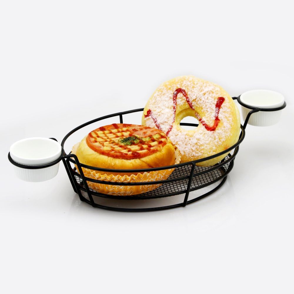 French Bread Baskets With 2 Ceramic Sauce Cups Fried Chicken