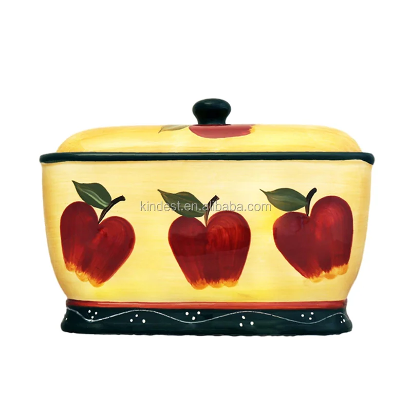 Handpainted Ceramic Country Style Apple Bread Box For Kitchen