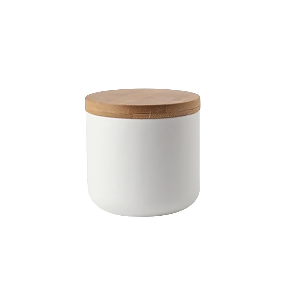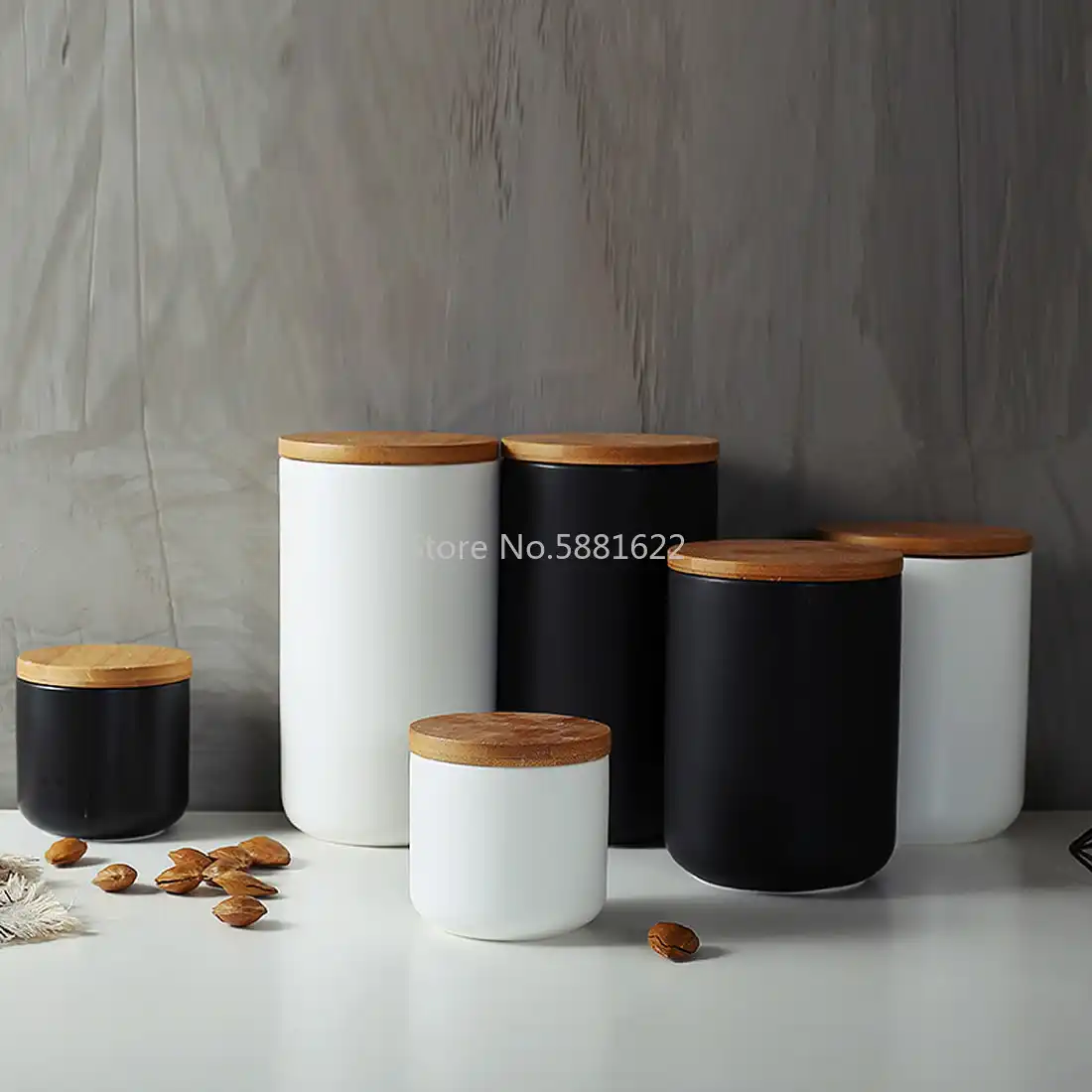 Nordic Style Ceramic Canister With Airtight Wooden Lids Food