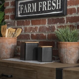 Shop Dual Tone Square Ceramic Canister With Wooden Lid Set Of 2