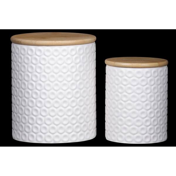White Textured Ceramic Canisters With Bamboo Lids Set Of 2 World