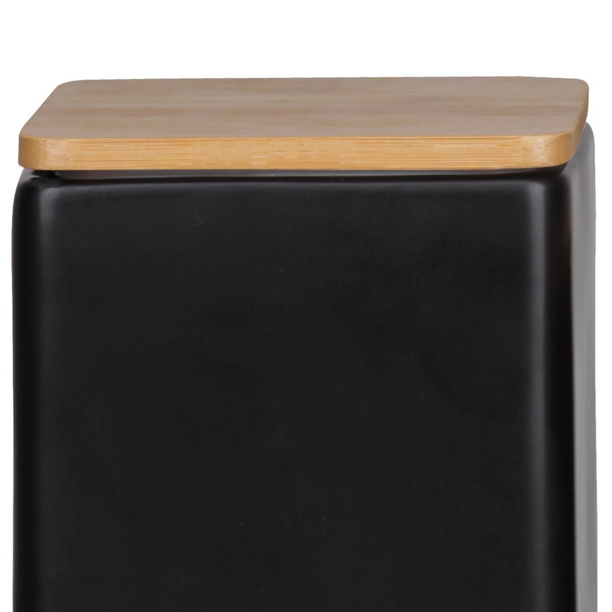 Shop Round Ceramic Canister With Wood Lid Smooth Black Finish