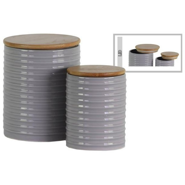 Cypress Home At Ease Ceramic Canister With Wood Lid In Grey Bed