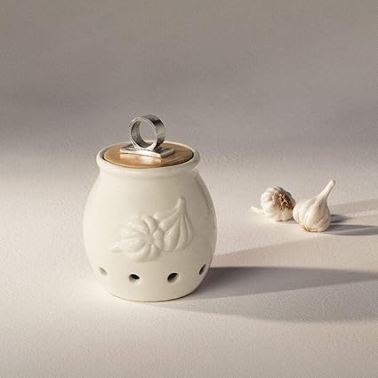 Buy Ellementry Garlic Ceramic Canister With Wooden Lid Measures