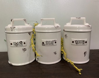 Addison Ceramic Canisters 3 Piece Set Farmhouse Kitchen