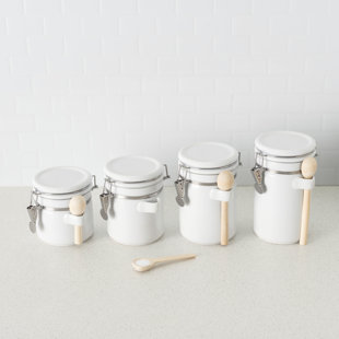 Bria Ivory Ceramic Kitchen Canister Set Of 4 Ceramic Kitchen