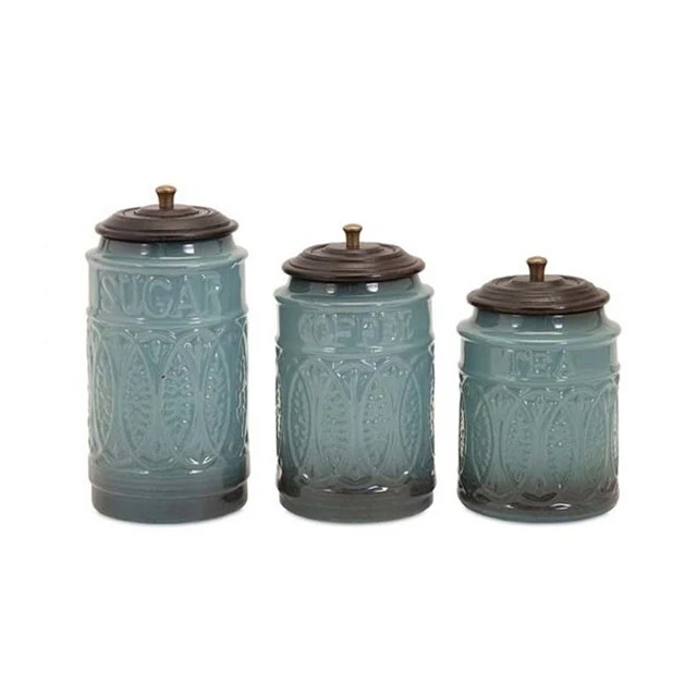Omniware Simsbury 3 Piece Turquoise Ceramic Canister Set