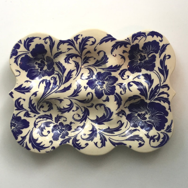 Blue Hibiscus Ceramic Egg Crate Etsy