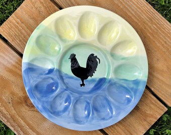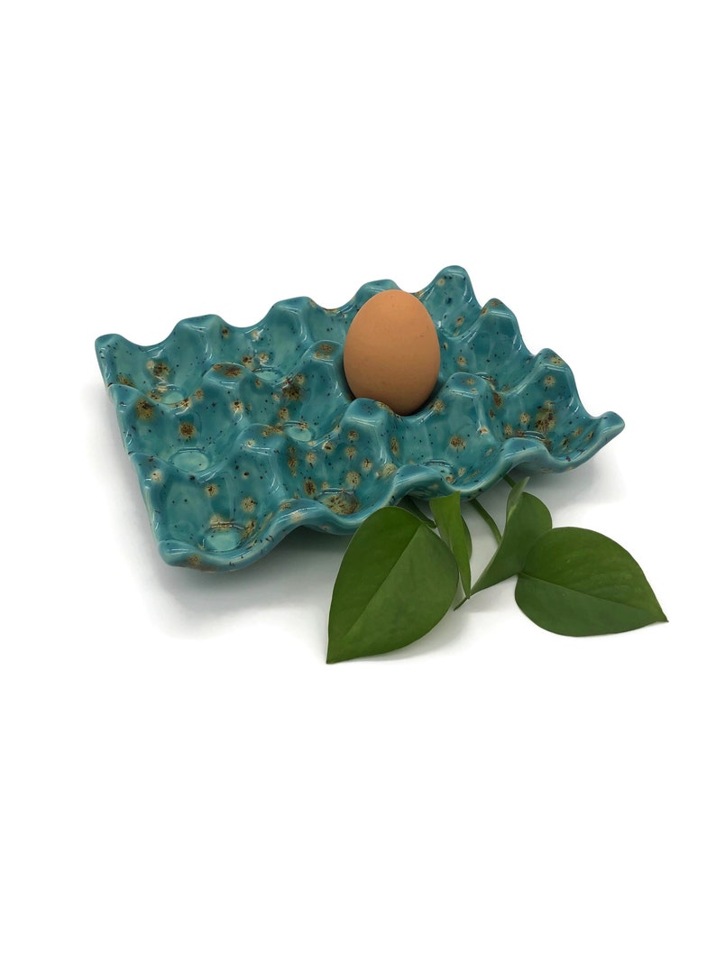 Ceramic Egg Crate In Teal Blue And Brown Egg Platter Egg Etsy