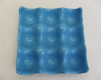 Amelia Egg Crate Aqua Blue Turquoise Half Dozen Ceramic Relish