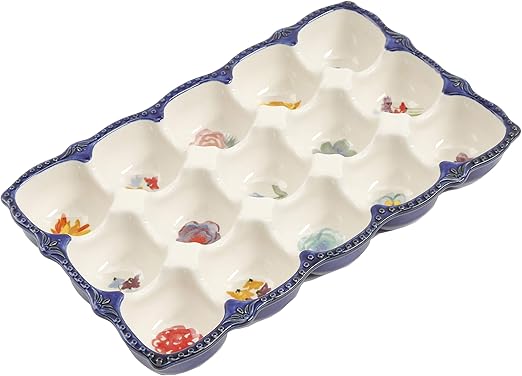 Food Network Blue Ceramic Egg Crate Dozen Holds 12 Holder Deviled