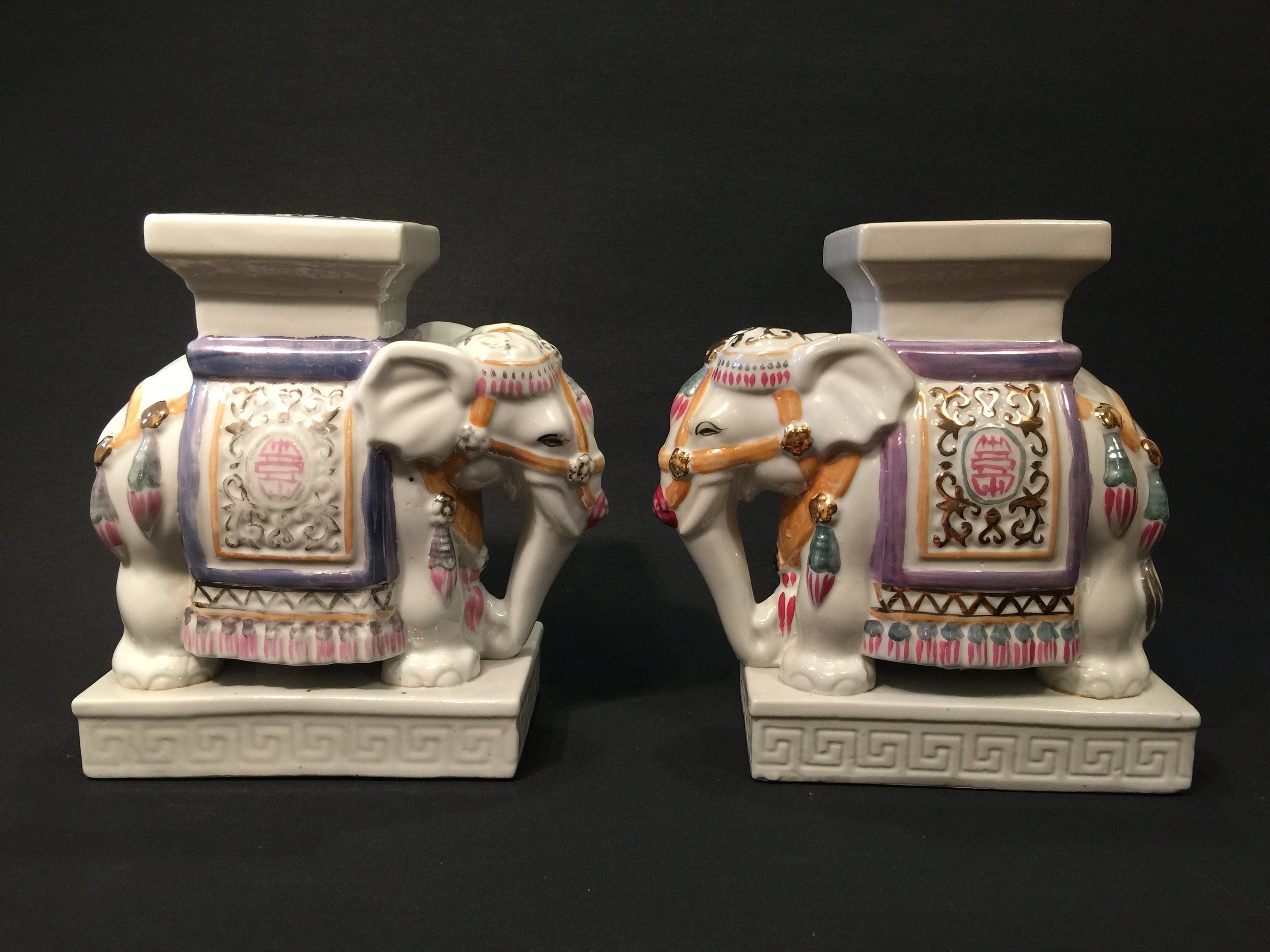 Vintage 1970s Ceramic Elephant Bookends Chinese Collectables