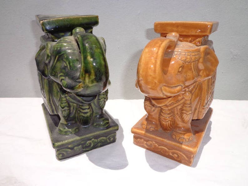 Vintage Ceramic Chinese Elephant Asian Elephant Bookend Etsy