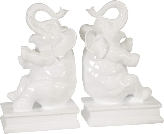 Urban Trends 2 White Ceramic Elephant Bookends Set Statue Figurine