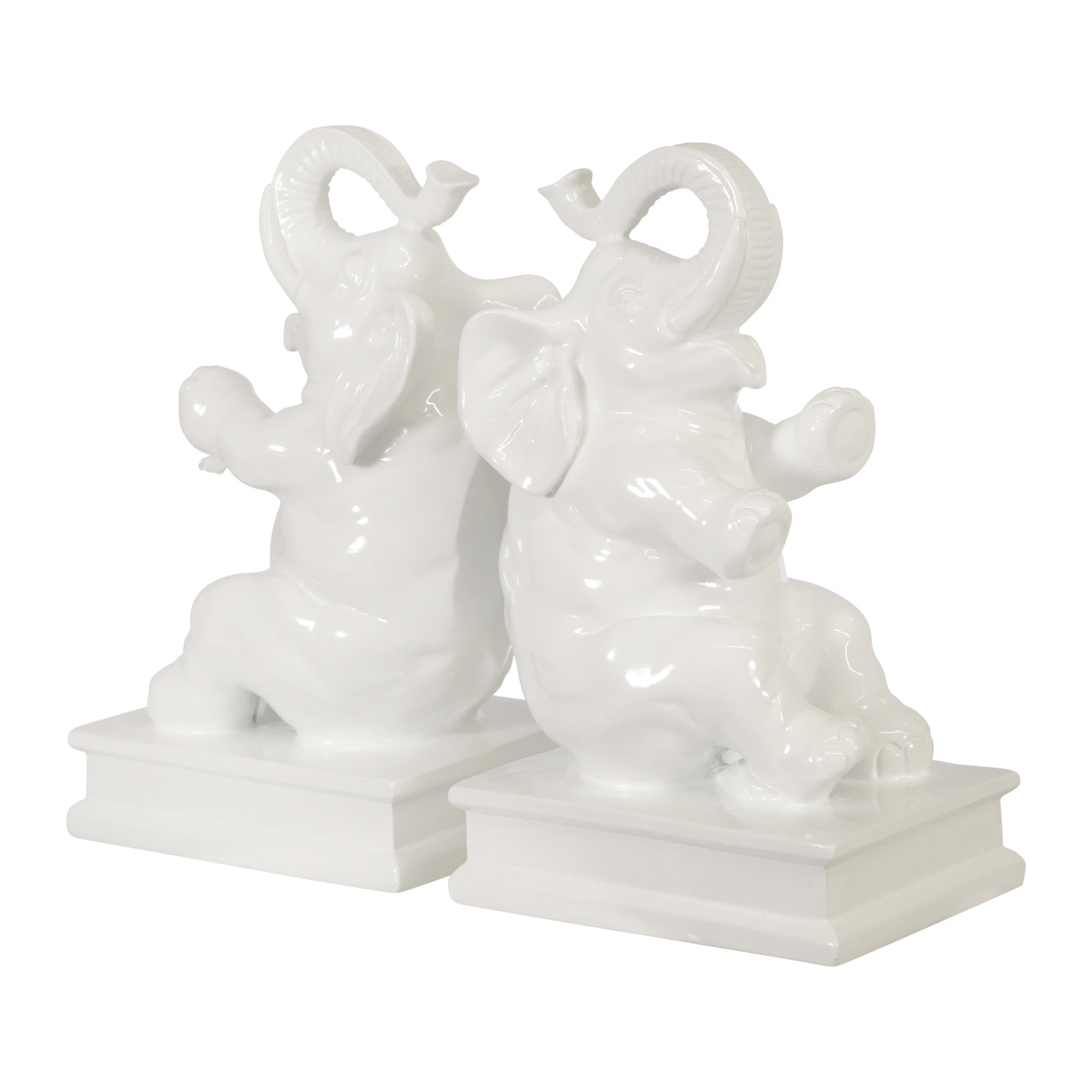 Drew Derose White Glazed Ceramic Elephants Bookend Set