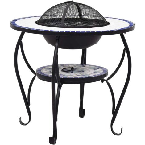 Mosaic Fire Pit Table Blue And White 68 Cm Ceramic