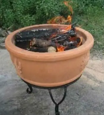 20 In Clay Fire Pit With Iron Stand Scroll Fp Scroll The