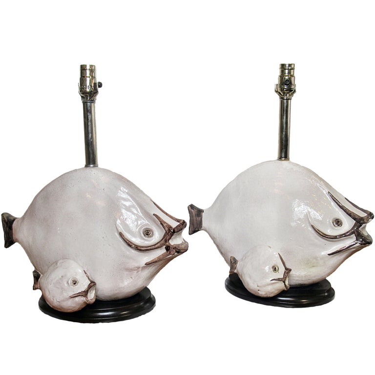 One Of A Kind Pair Ceramic Fish Table Lamps Heathlighting