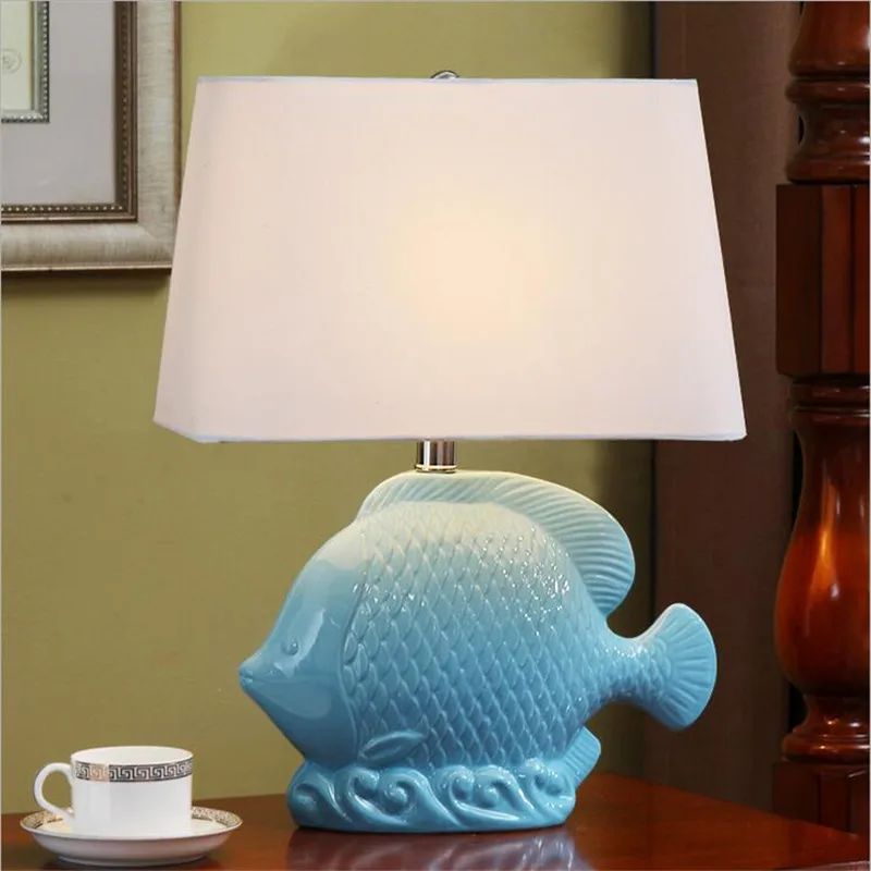 Modern Romantic Creative Blue Ceramic Fish Fabric Led E27 Table