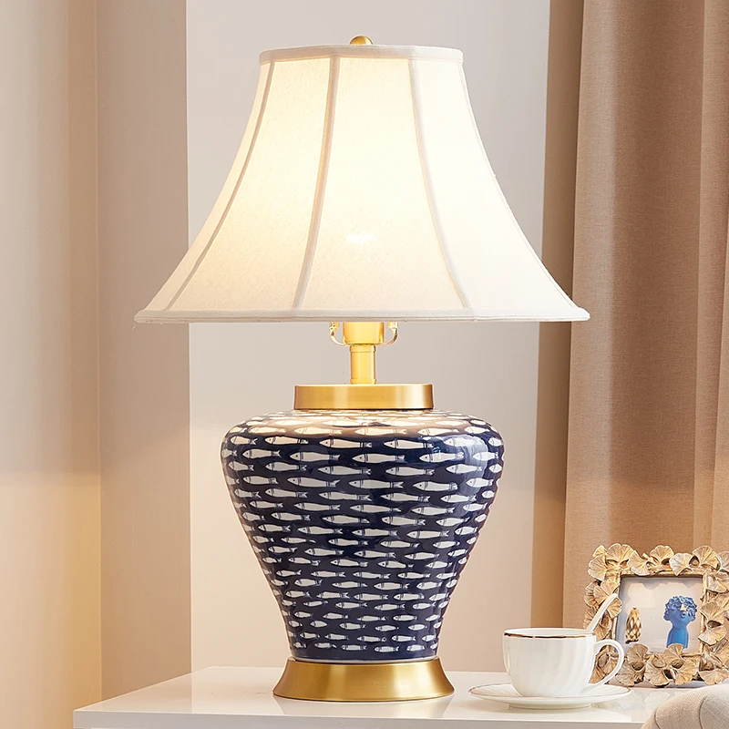 Amazon Com Table Lamp Blue Fish Ceramics Bedroom Bedside Lamp