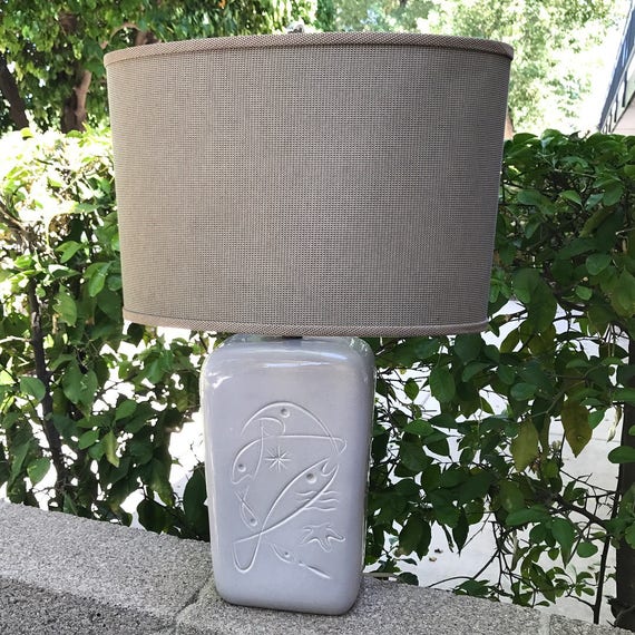 Gray Ceramic Table Lamp Abstract Fish Decor Etsy