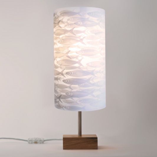 School Of Fish Cylindrical Table Lamp White Silver Sand Navy