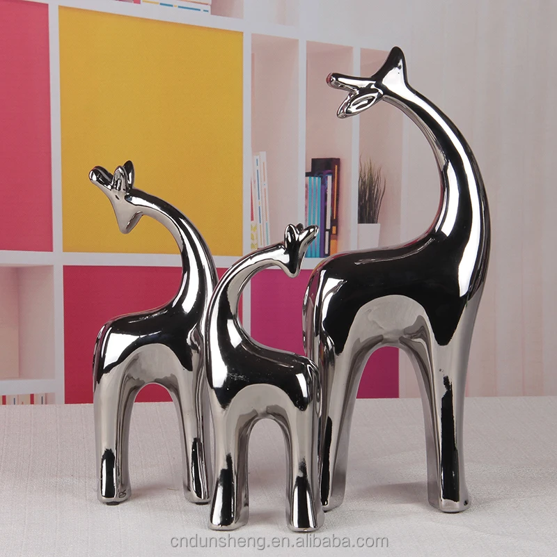 Wholesale Ceramic Porcelain Silver Decorative Giraffe Statue For