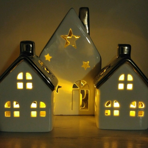 Pier 1 Holiday Pier1 Ceramic Village Tea Light Set Of 3 Poshmark