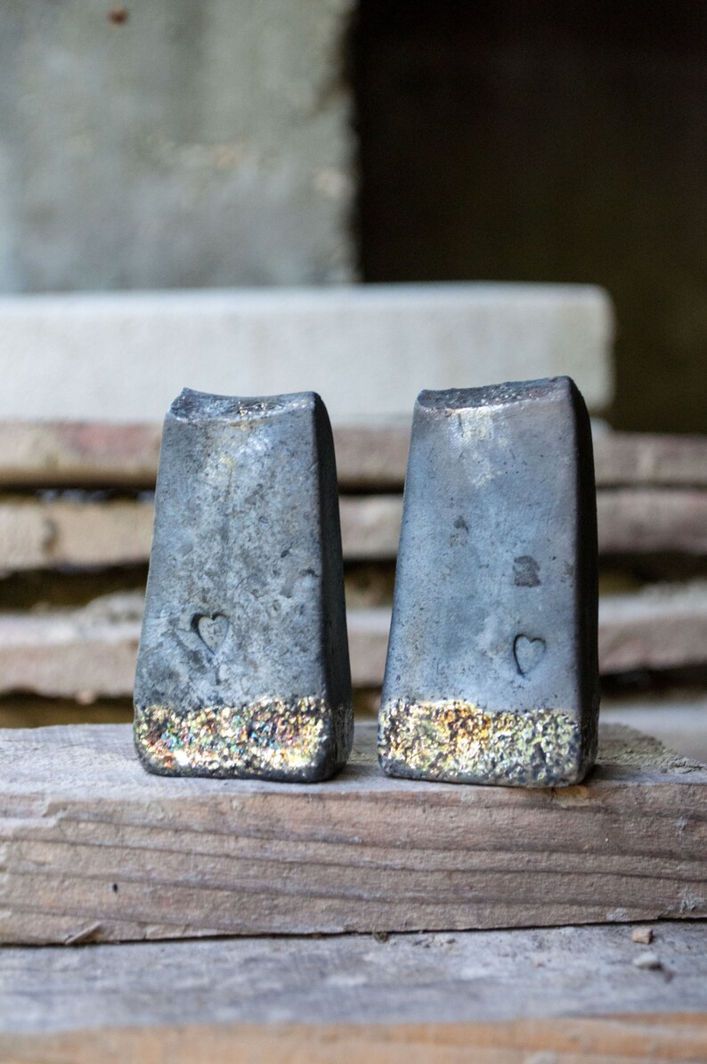 Love Art Black And Gold Raku Fired Ceramic Houses With Heart Etsy