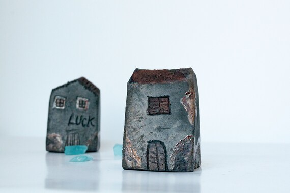 Rustic Raku Fired Pottery Ceramic Houses With Copper Mat Etsy