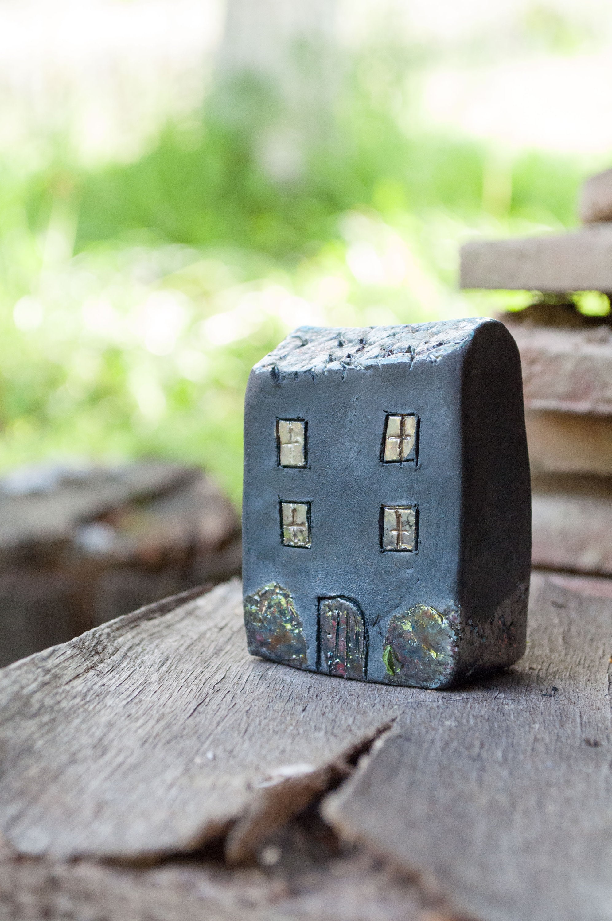 Raku Ceramic House Handmade Black Raku Pottery Fired Ceramic Etsy