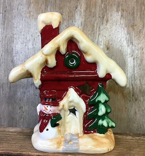 Ceramic Glazed Christmas Grotto House With Snowman Tea Light