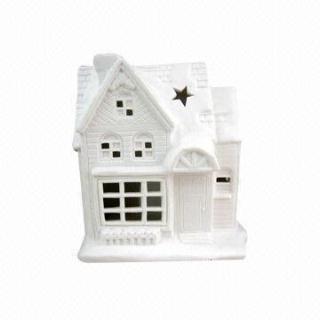 China Ceramic Christmas House Lantern With Led Candle Inside On