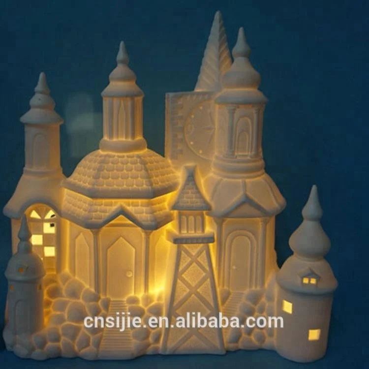 White Ceramic Castle Christmas Village House Christmas Decorations