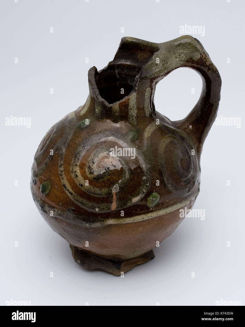 Earthenware Oil Jug On Stand With Standing Ear And Silt Decoration