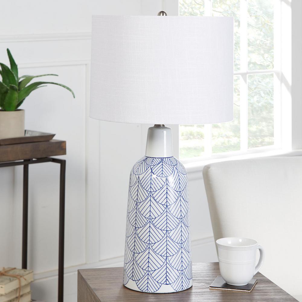 Currey Essay Ceramic Table Lamp In Snowy White With A Blue