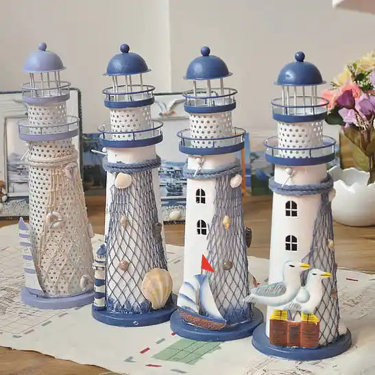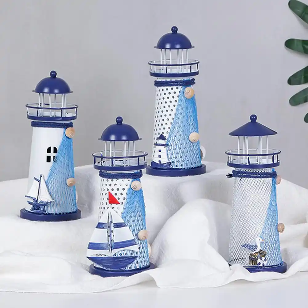 Mediterranean Iron Lighthouse Craft Ornaments Ocean Home Decor Led