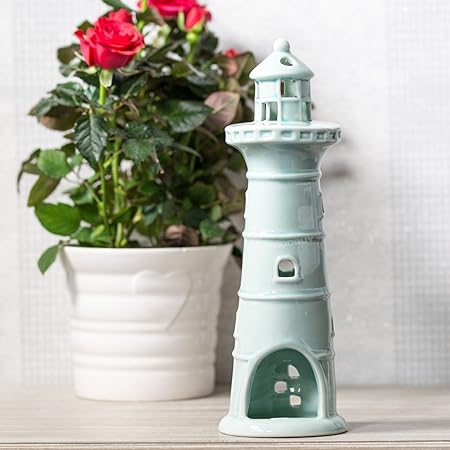 Pale Blue Ceramic Lighthouse Tea Light Candle Holder Amazon Co Uk