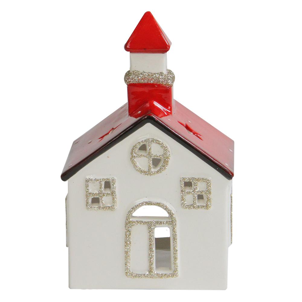 Northlight 6 In White And Red Christmas Ceramic Church Flameless