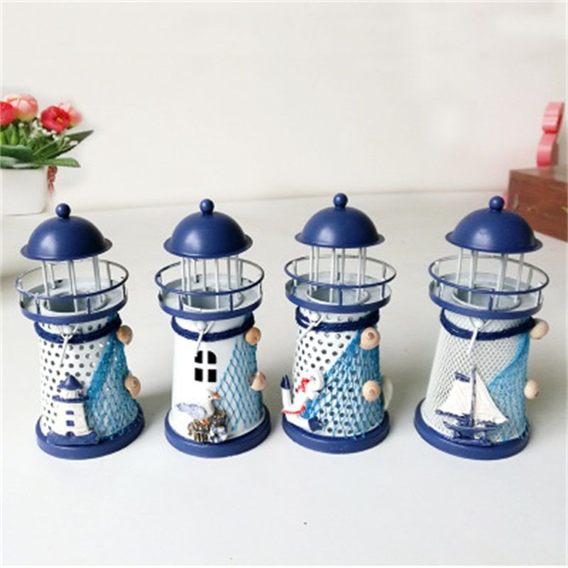 Mediterranean Sea Style Iron Lighthouse Candlestick Home