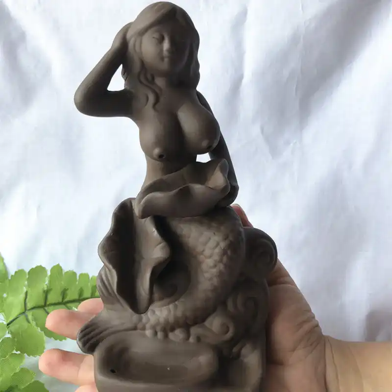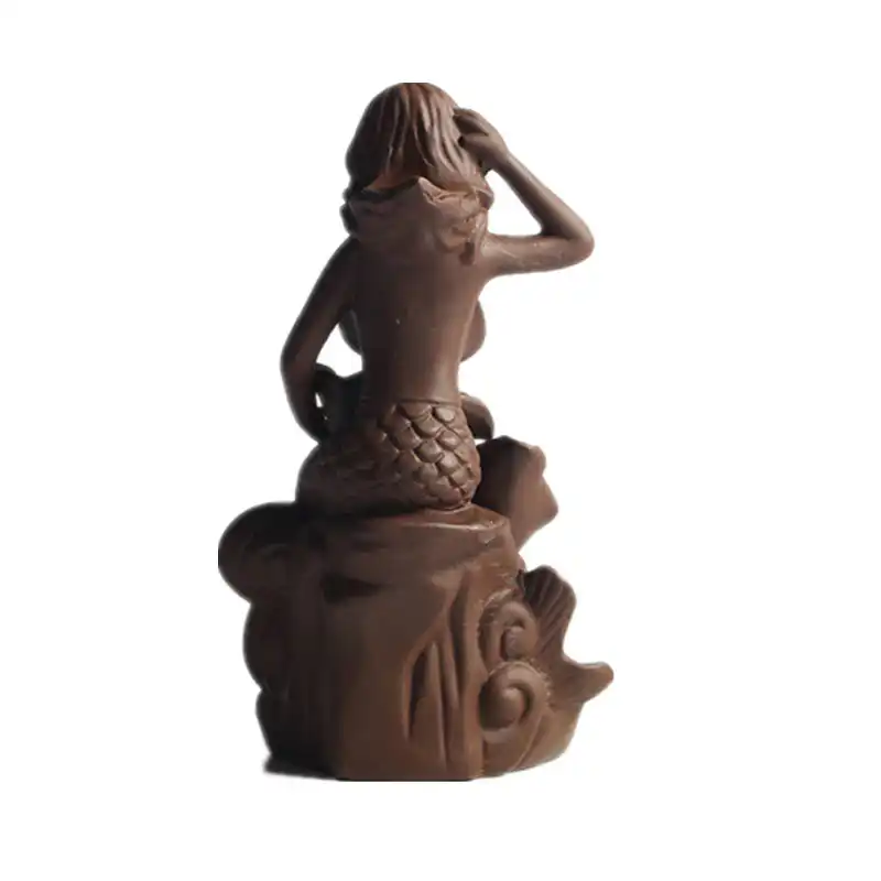 Homyl Ceramic Brown Mermaid Incense Burner Statue Burner Figurine