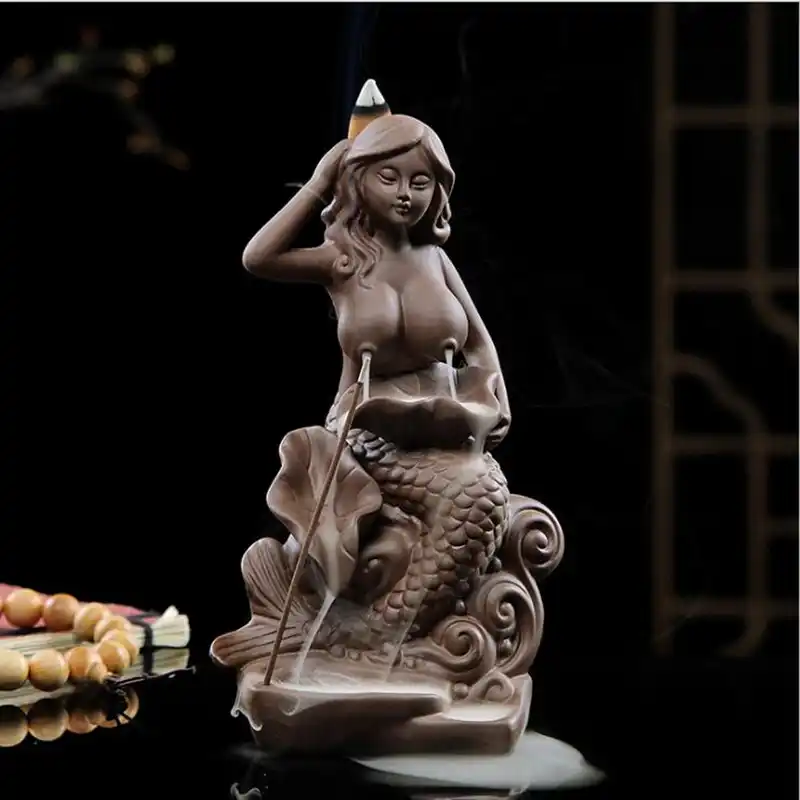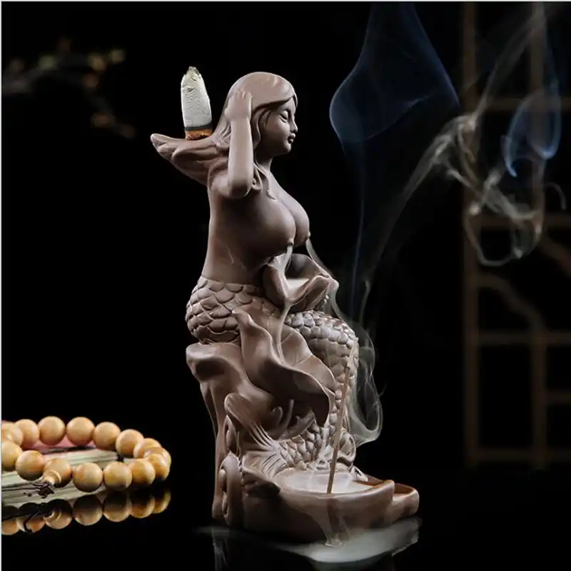 Backflow Incense Burner Creative Mermaid Statue Home Decor Ceramic