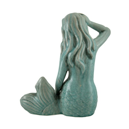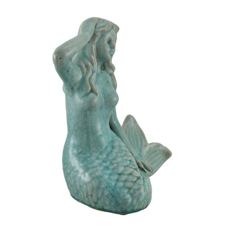 15 Aquamarine Ceramic Nautical Smiling Mermaid Statue With A
