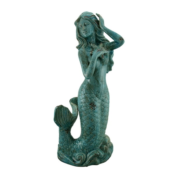 Mermaid S Wave Blue Vintage Finish Ceramic Mermaid Statue 23 Inch
