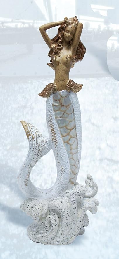 Homestyles 16 In Antique White Classic Mermaid Sitting On Coastal