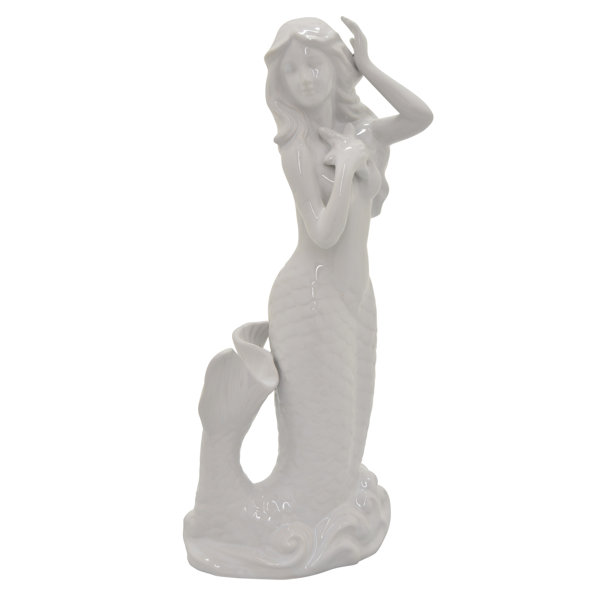 Highland Dunes Vanscoy Ceramic Mermaid Statue Wayfair